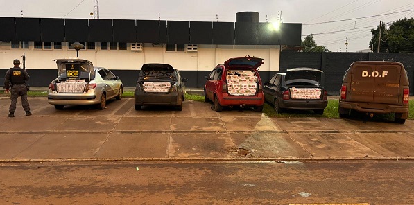 Os quatro condutores foram detidos em flagrante e encaminhados, junto com toda a carga e os automóveis, para a Delegacia da Polícia Federal em Campo Grande, onde o caso será processado como contrabando e descaminho.